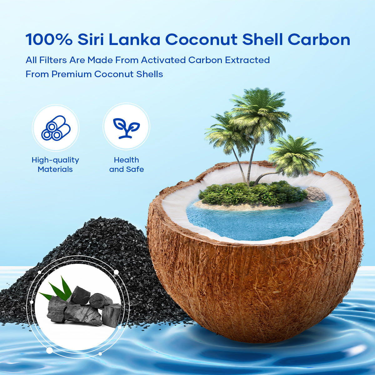 Excellent Filtration PerformanceThe 100% premium Sri Lankan coconut shell carbon blocks can remove heavy metals, large sediments, and all other dangerous impurities and contaminants from your water.